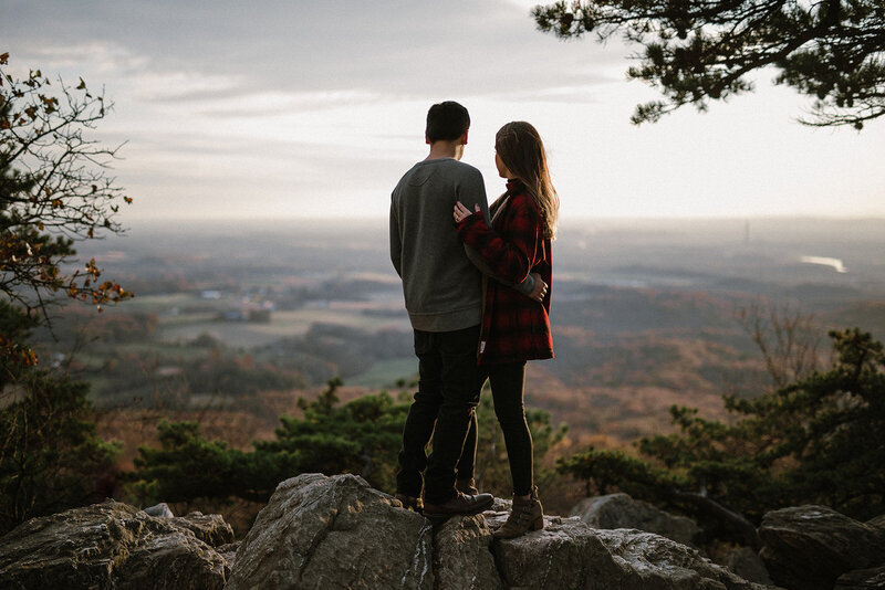 This location has so many unique focal points for photography! It’s an easy 400ft of stairs before reaching an incredible panoramic view of the surrounding region from an elevation of 2898 feet. Although there are higher points in Maryland, Dan’s Mountain has the view of the most impressive escarpment of Maryland’s mountains. It is essentially continuous both north (into Pennsylvania) and south (into West Virginia) known as the Allegheny Front. The history of this overlook is told in vibrant colorful graffiti art on the rocks, making Dan’s Rock a unique landmark. If graffiti on rocks upsets you, skip it but this is part of the location’s tradition! If you look closely, you’ll notice engraved inscriptions in the rocks from 1931, 1947, and 1870! People have been coming here to leave their mark for generations. Maybe you could leave yours on your Maryland elopement day!