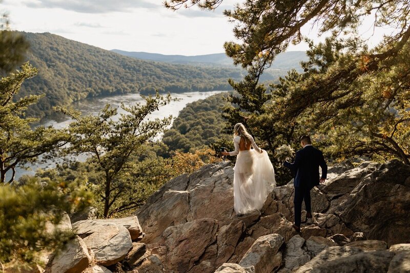 Perched at the southern tip of South Mountain in Maryland, more than 500 feet above the Potomac River, Weverton Cliffs in central Maryland is easily one of the state’s most scintillating viewpoints. It is also relatively easily accessible—this 1.9-mile out-and-back trail is generally considered a moderately challenging route, it takes an average of 1h 8 min to complete. This is a very popular area for hiking and running, so you’ll likely encounter other people while exploring on your Maryland elopement day. The trail is open year-round and is beautiful to visit anytime. Dogs are welcome, but must be on a leash.